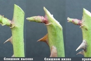 Обрезка производится на высоте 5-8 мм над почкой, чтобы будущий побег не засох. Срез производить по косой от почки.